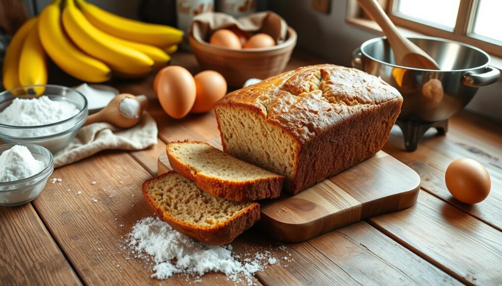 To make a delicious classic banana bread, prepare your kitchen and ingredients well. Make sure all ingredients are at room temperature. This affects the bread’s texture and consistency.